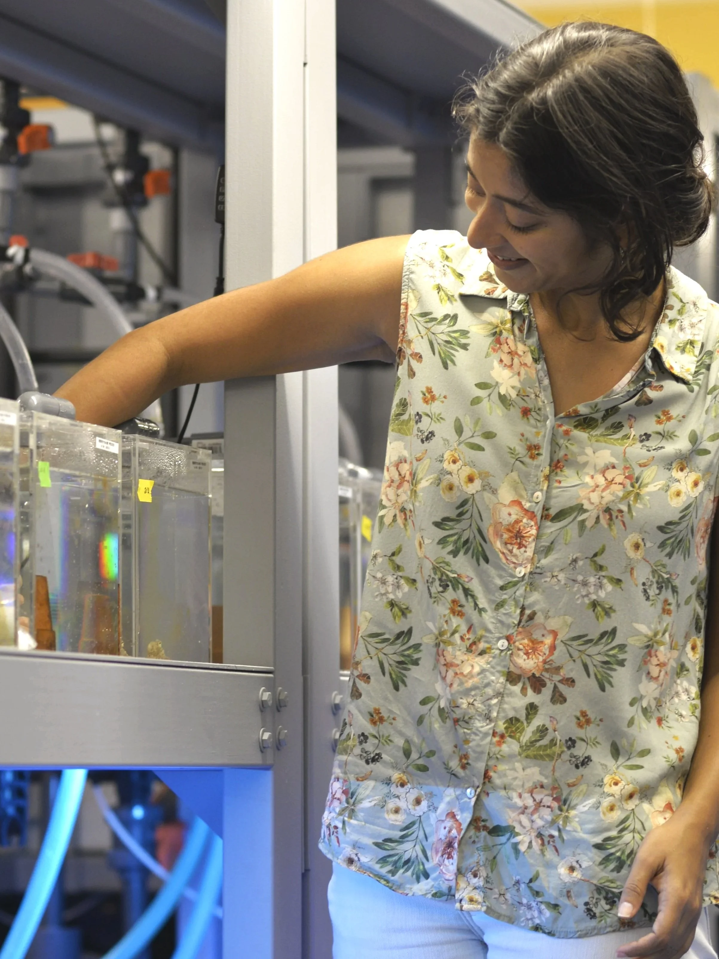 Aditi’s scientific background deeply informs her artistic practice. She spent years observing octopuses and other animals up close—studying their perception, cognition, and movement through both structured experiments and field-based encounters. Her research experiences span octopus intelligence studies in Japan, coral reef ecology in the remote Lakshadweeep and Andaman islands in India, chimpanzee behaviour in the field in Tanzania, and neuroimaging at Johns Hopkins Children’s Center.